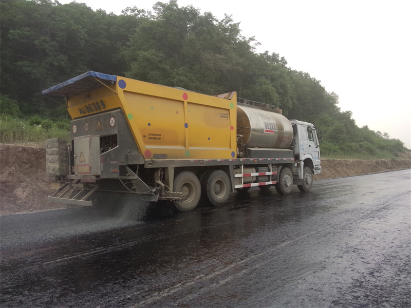 應用范圍:     砂封層主要應用于高速公路,一、二級公路瀝青路面的預防性養護。可以進行美化路緣、路肩施工。經過砂封層施工后可以改變新舊路面的外觀及顏色。施工說明:砂封層是一種層鋪的施工工藝。采用同步碎石封層設備將聚合物改性粘結材料和骨料金剛砂同時撒布施工的一種施工工藝。粘結材料應選擇高濃高粘且具有一定滲透型和還原性。骨料需選擇耐磨的金剛砂。技術特點:(1)常溫施工,無需加熱,節(jié)能環(huán)保。(2)用來解決瀝青路表面瀝青老化出現的貧油狀況。(3)解決原路面出現的麻面、松散掉粒、輕微裂縫等現象。(4)新路面可以起到防水的作用。(5)增加路面摩擦系數和耐磨性能。施工工藝:封閉交通→清理路面→病害處理→砂封層施工→養生→開放交通